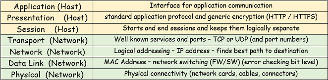 Private Addressing range for an intranet Class A: 10.0.0.0 - 10.255.255.255 Class B: 172.16.0.0 - 172.31.255.255 Class C: 192.168.0.0 - 192.168.255.255 Loopback: 127.x.x.x Auto-configuration range: 169.254.x.x (i.e. if not assigned an IP address or cannot get one from the DNS then a host may auto-configure an IP address) NAT - Network Address Translation - Allows hosts on an intranet to share a public IP address for internet connectivity. Cisco recommends no more than 500 hosts on a LAN network |